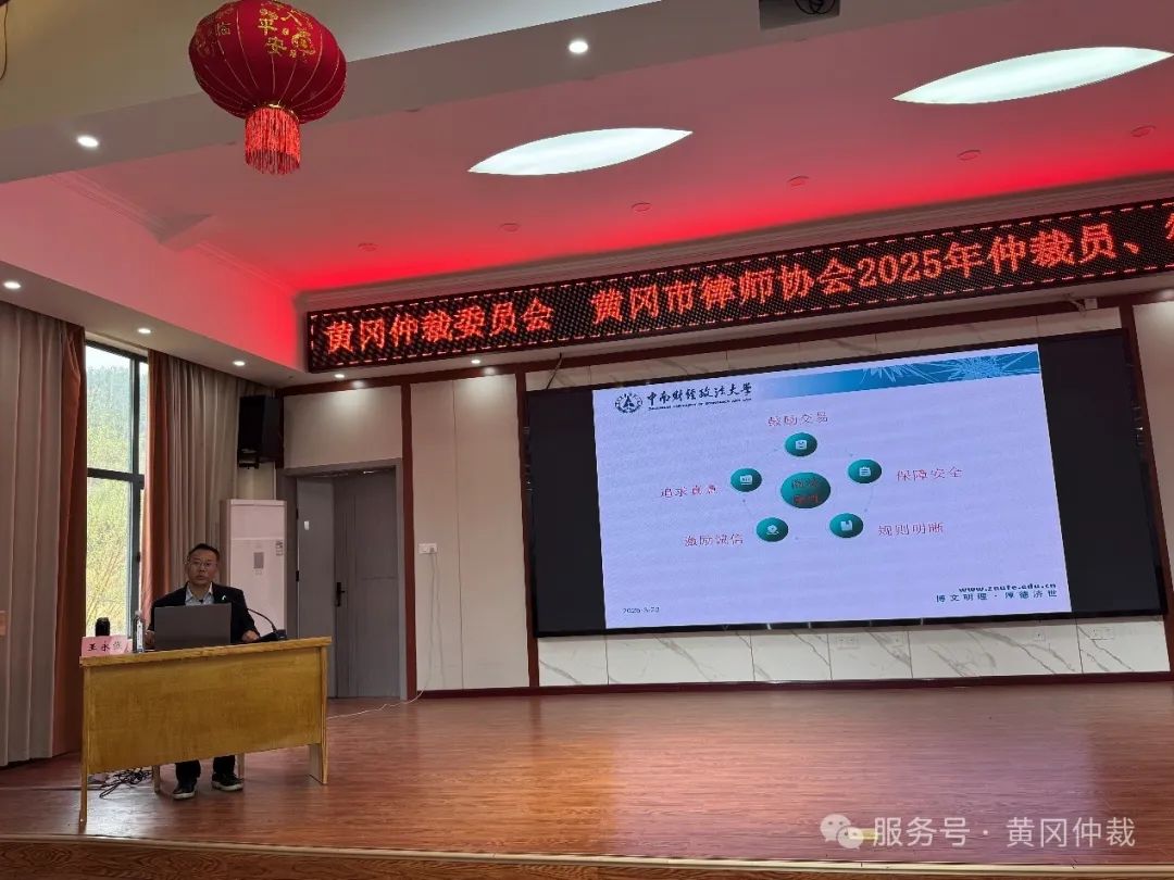黄冈市中级人民法院民三庭副庭长、四级高级法官朱卫作《仲裁司法审查的实务与理论》专题讲座。朱卫法官讲授:仲裁司法审查是保障仲裁公正性的关键环节,仲裁员需要精准把握仲裁法律边界,确保仲裁裁决结果程序公正和实体公正。朱卫法官还结合最高人民法院有关仲裁司法解释和典型案例,系统解析了仲裁协议效力认定、裁决撤销与不予执行等仲裁实务疑难问题。